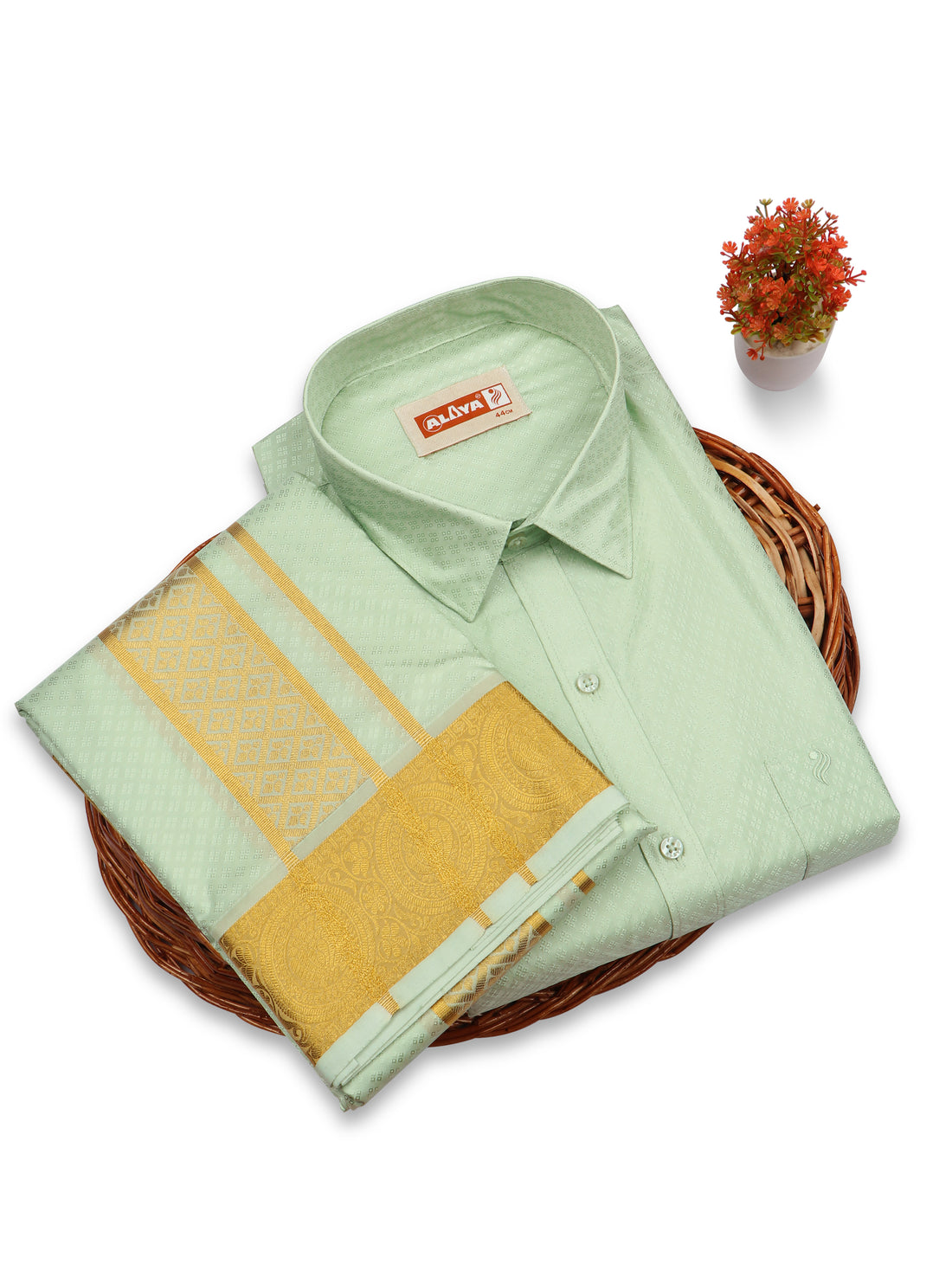 Navodhaya Dhoti & Shirt Combo - Pista Green