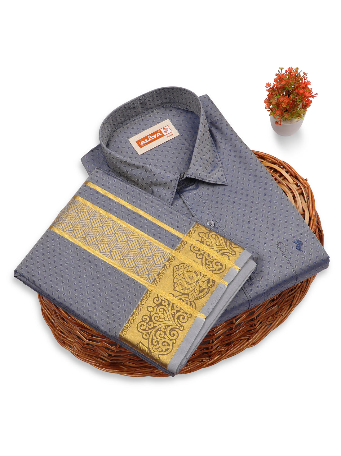 Navodhaya Dhoti & Shirt Combo - Pastel Grey