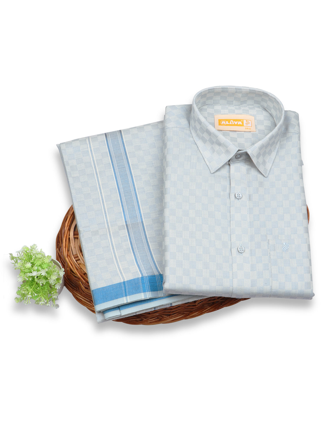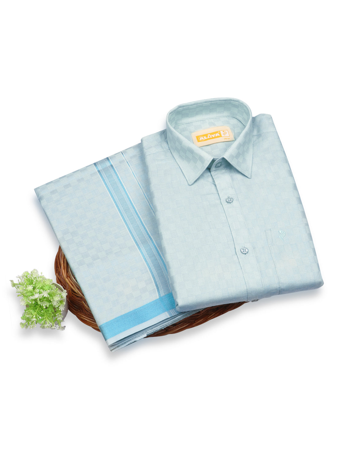 Kondattam Grand Tissue Shirt & Dhoti Combo - Flat Blue