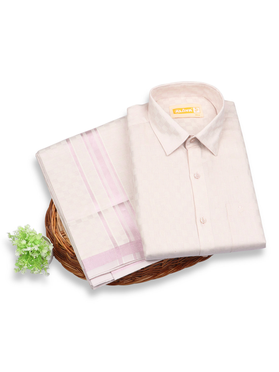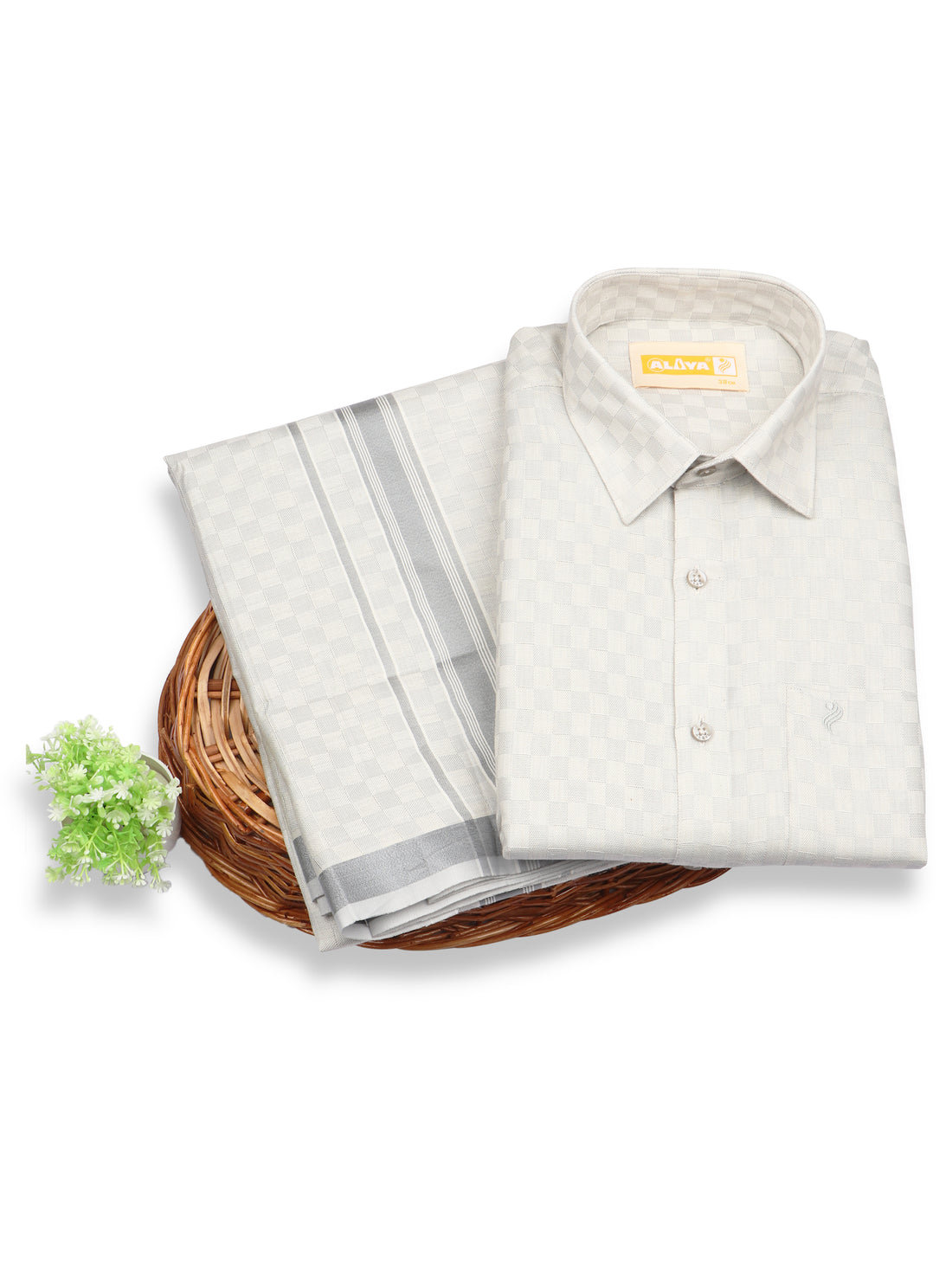 Anbalaya Wedding 3 IN 1 - 20K (Readymade Shirt, Dhoti & Towel) - Cream