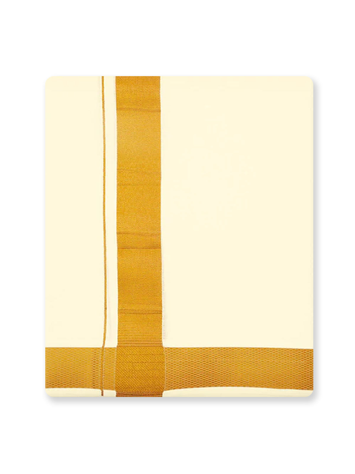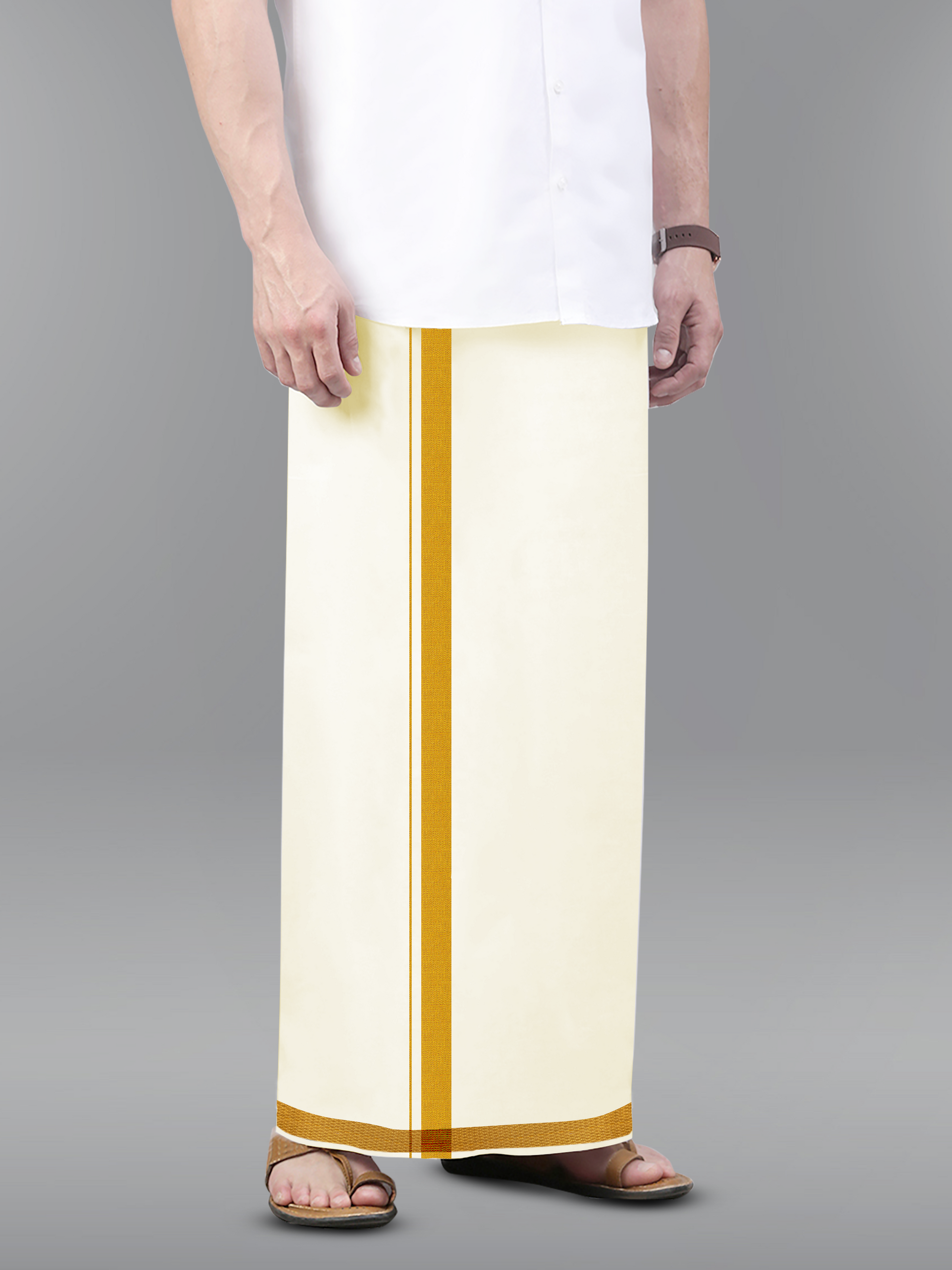 Get Festival Look With Adhisayam Cream Colour Gold Jari Cotton 4.00 Meter Dhoti.