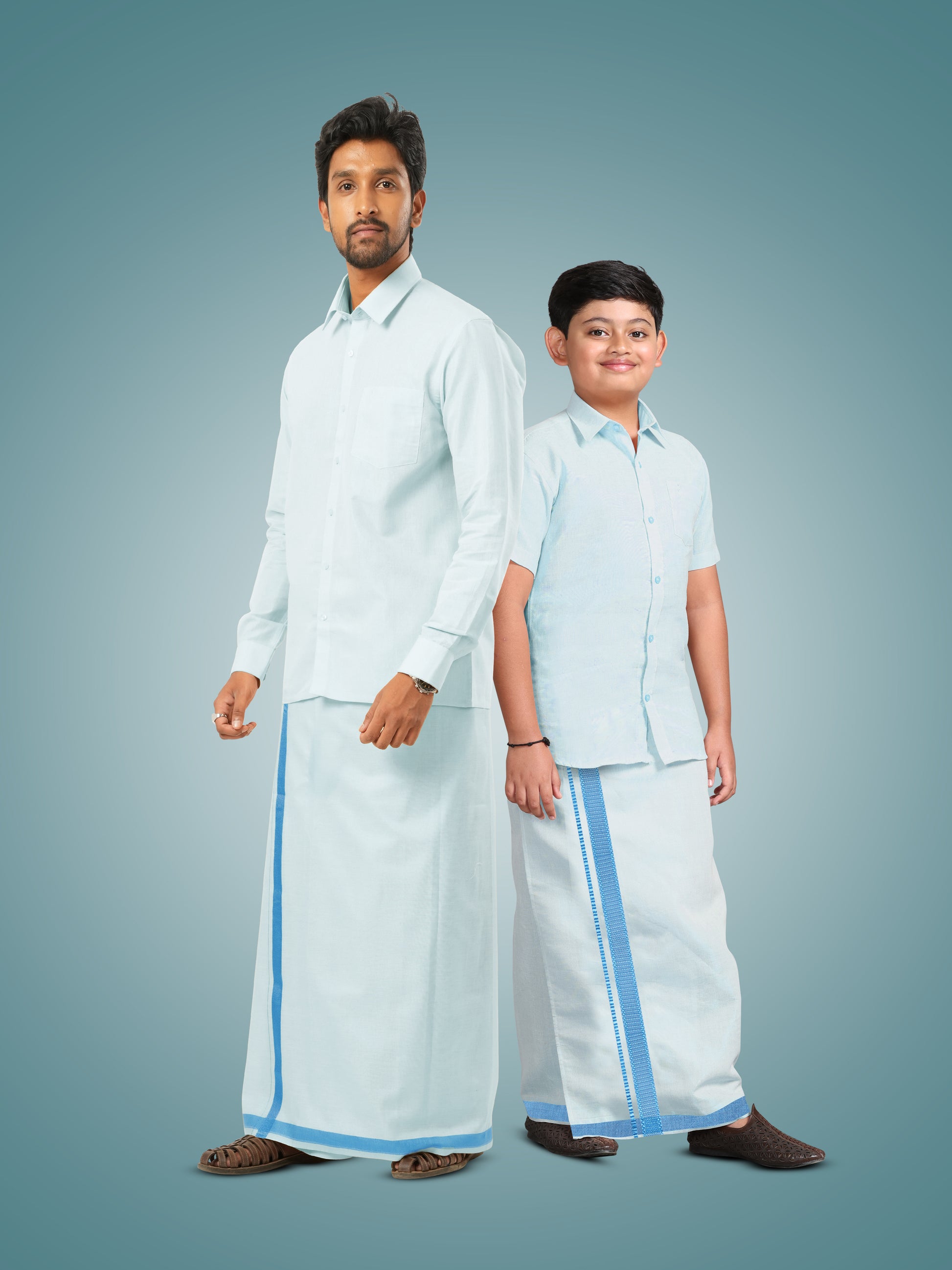 Father and Son Combo Dhoti Shirt - Flat Blue
