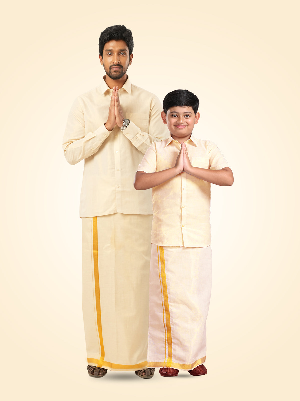 Father and Son Combo Dhoti Shirt Combo - Gold