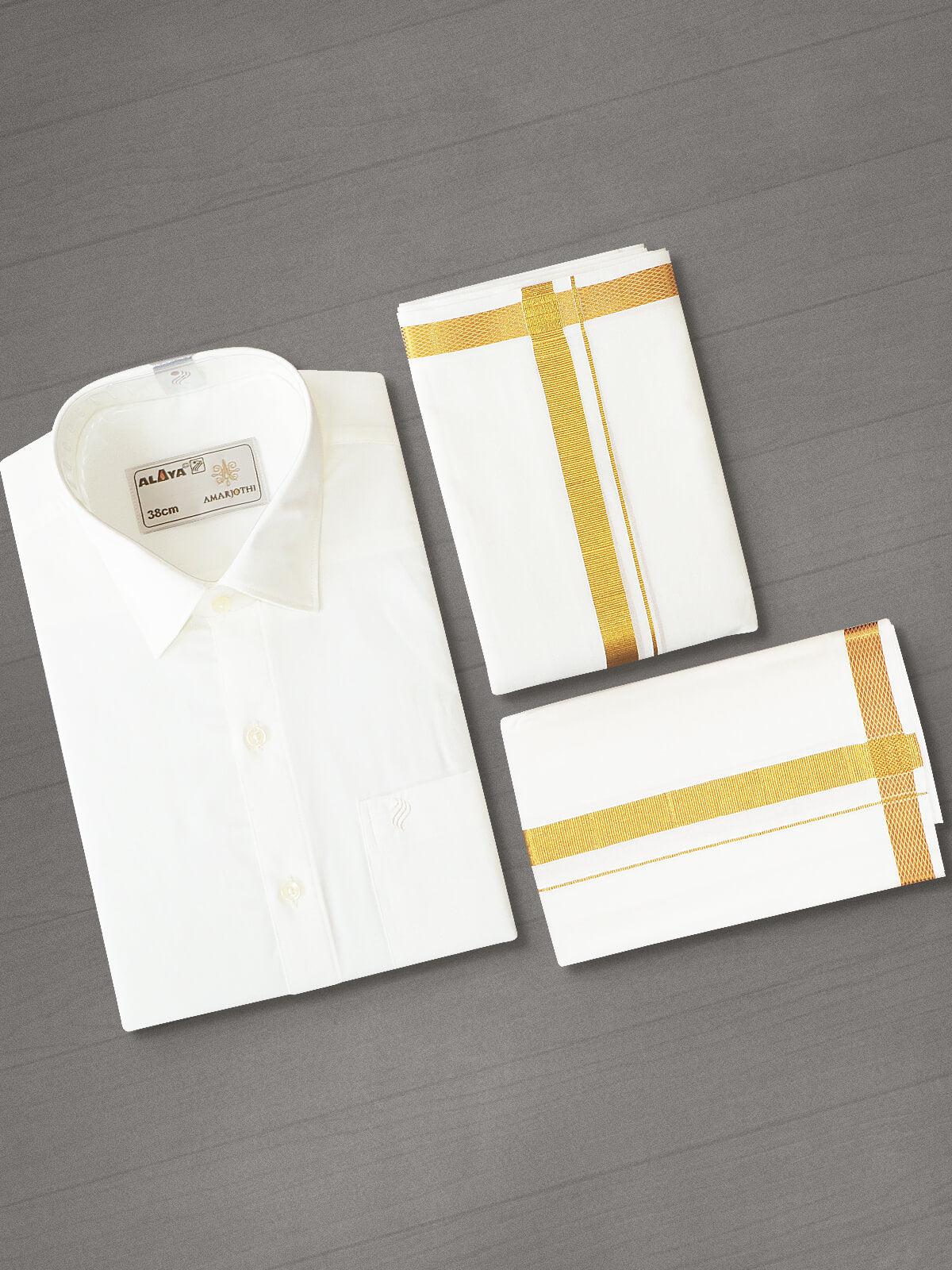 Grand Wedding 3 IN 1 - 30K (Readymade Shirt, Dhoti & Towel) - White