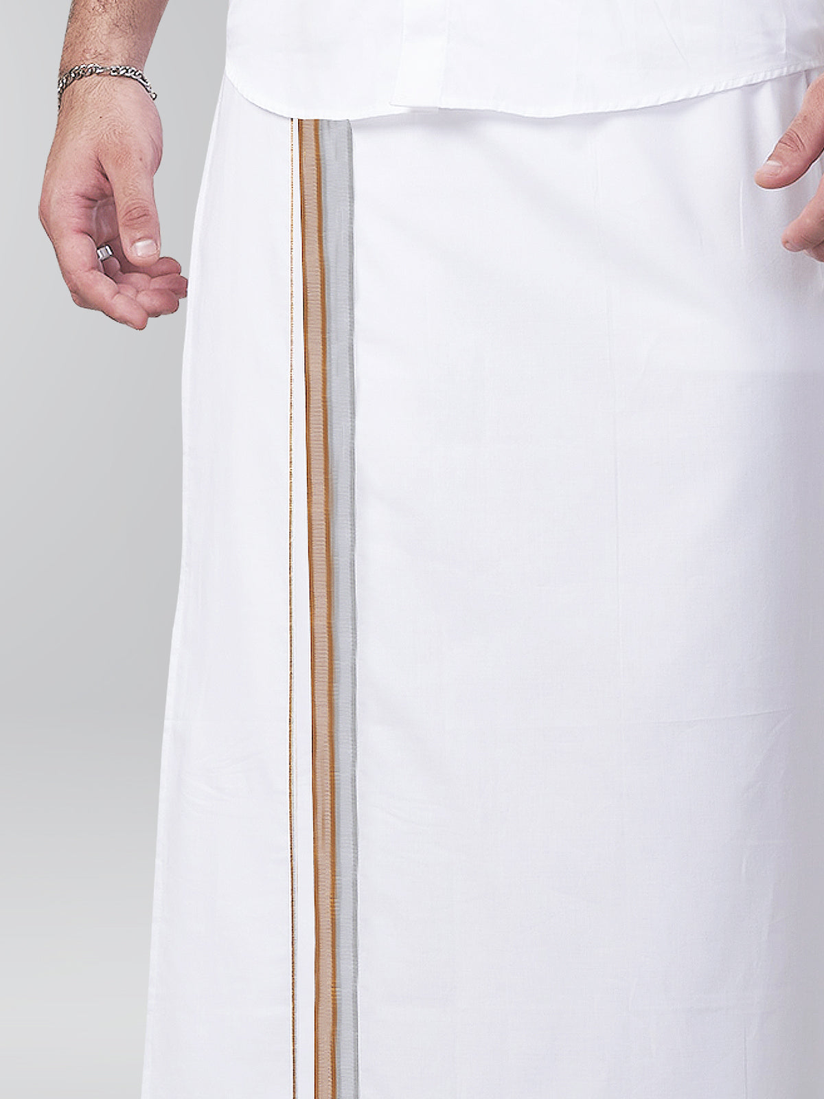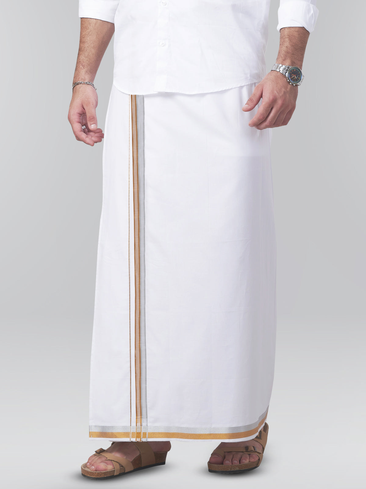 Enhance Your Look With Jari Fancy Border Cotton Plus 2.0 Meter Dhoti.