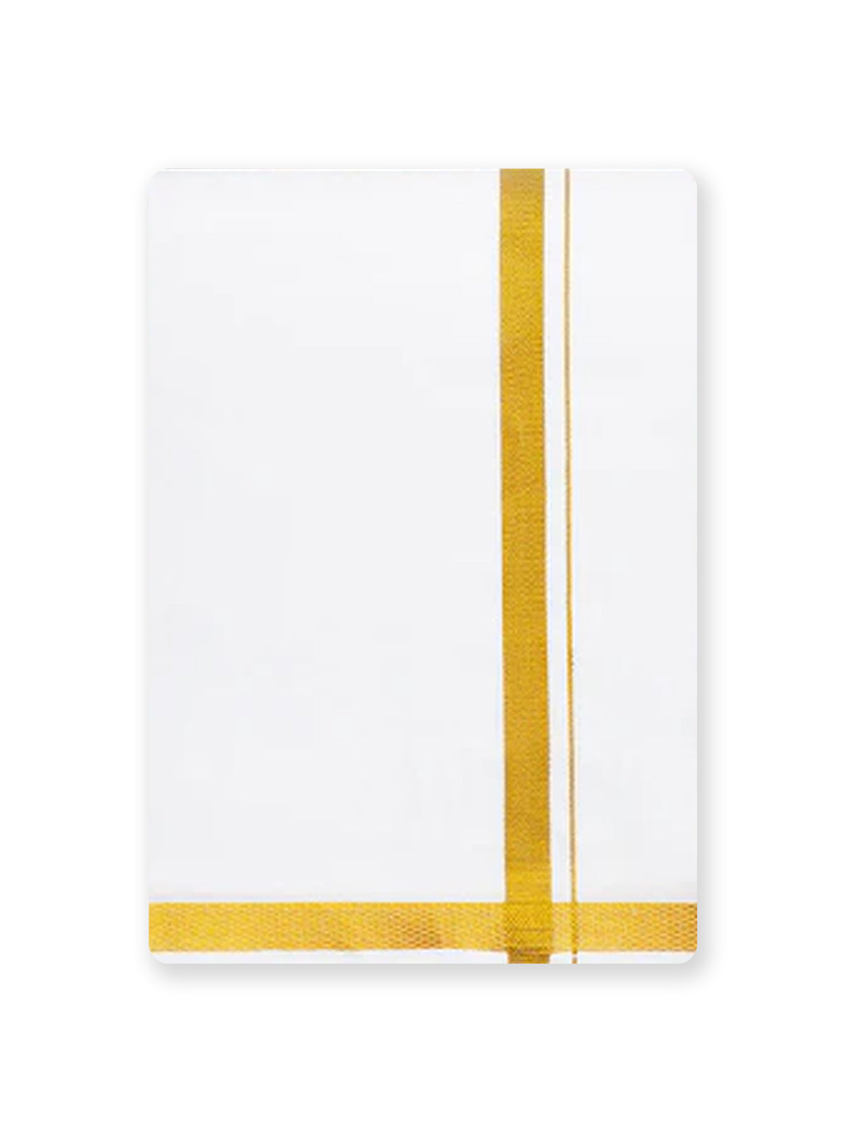 Indra Pooja Men 9+5 Dhoti - Small Gold Jari Border