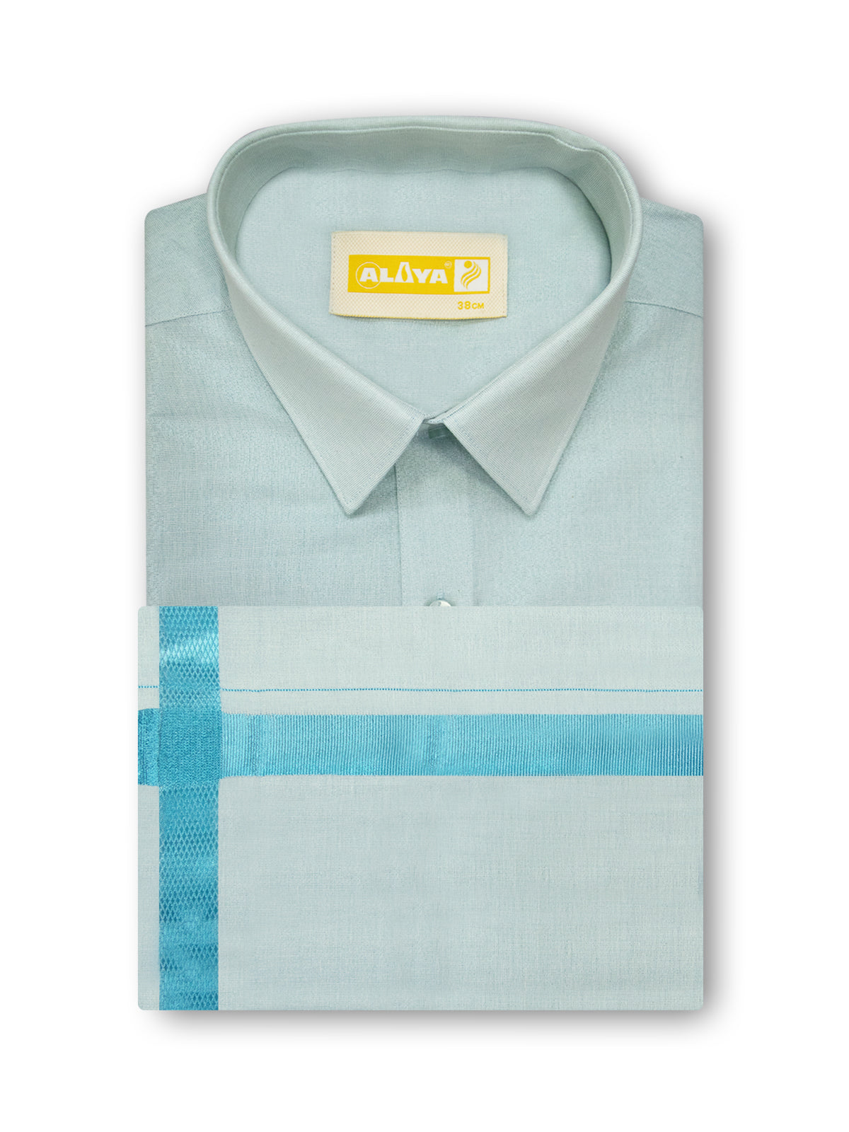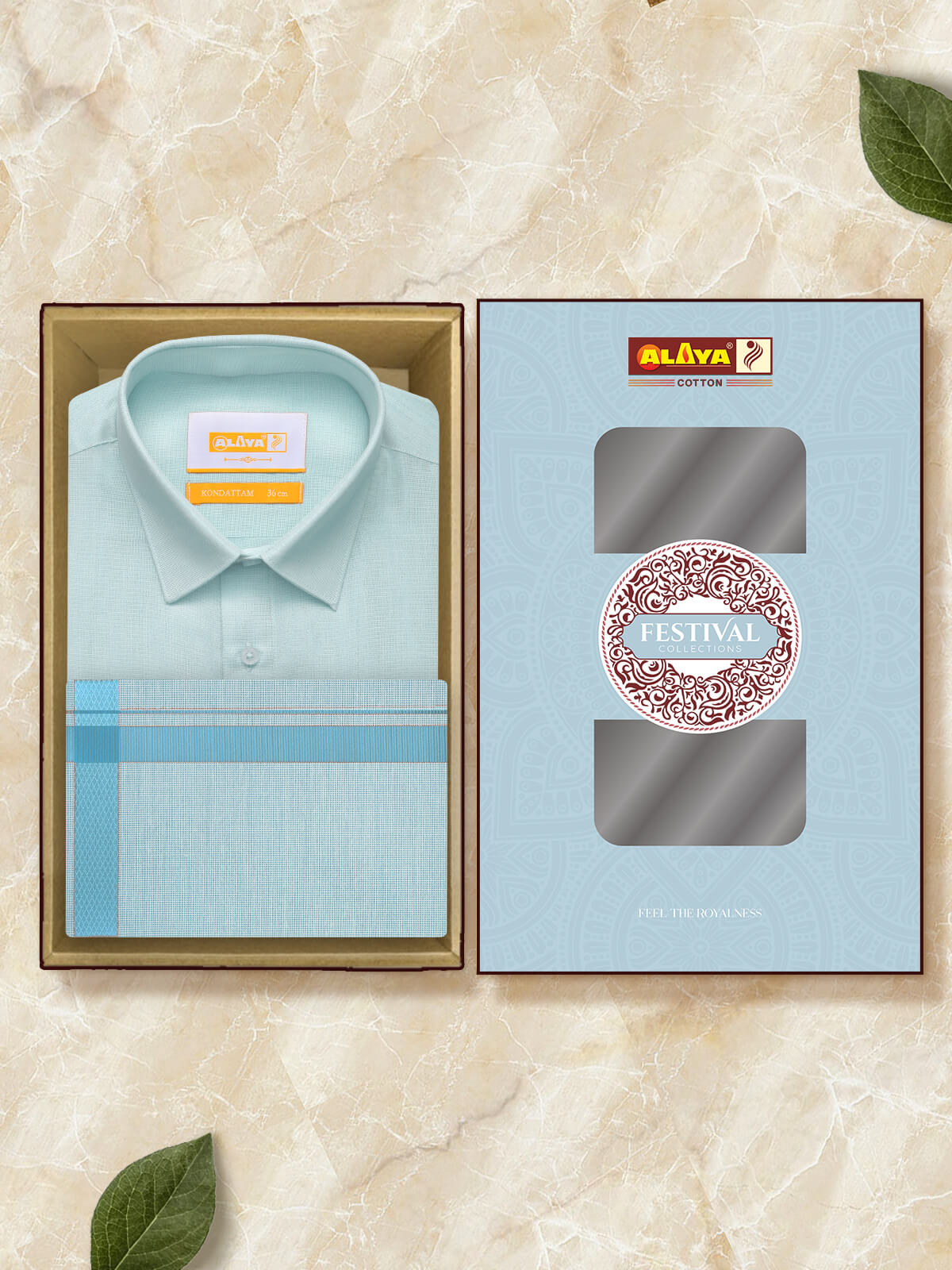Kondattam Grand Tissue Shirt & Dhoti Combo - Blue Hosta