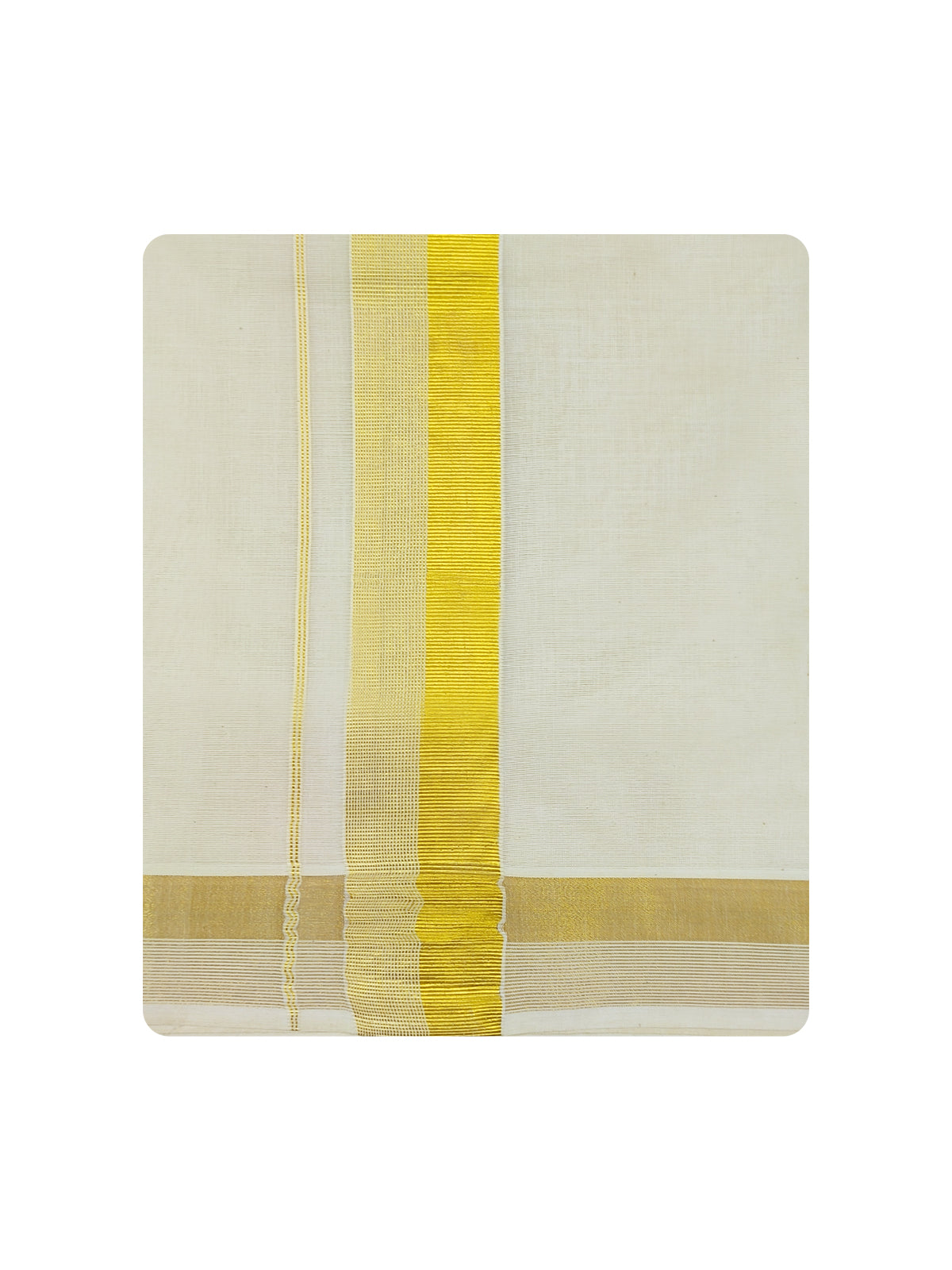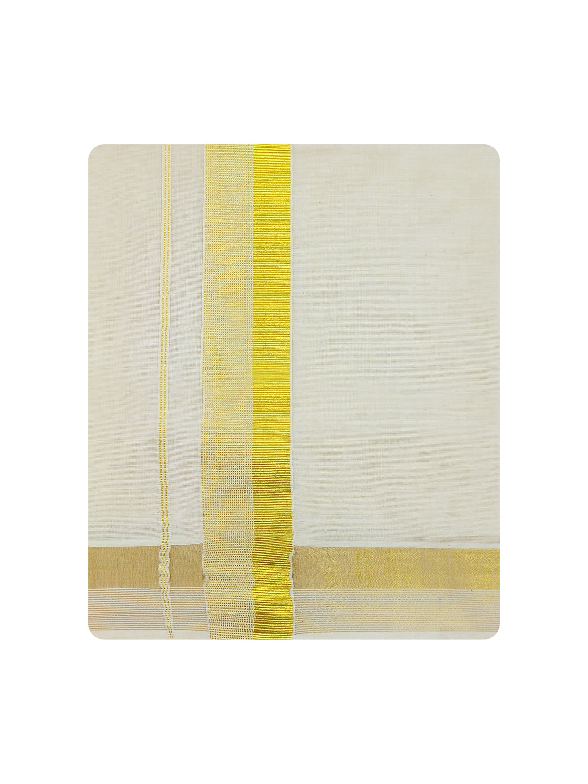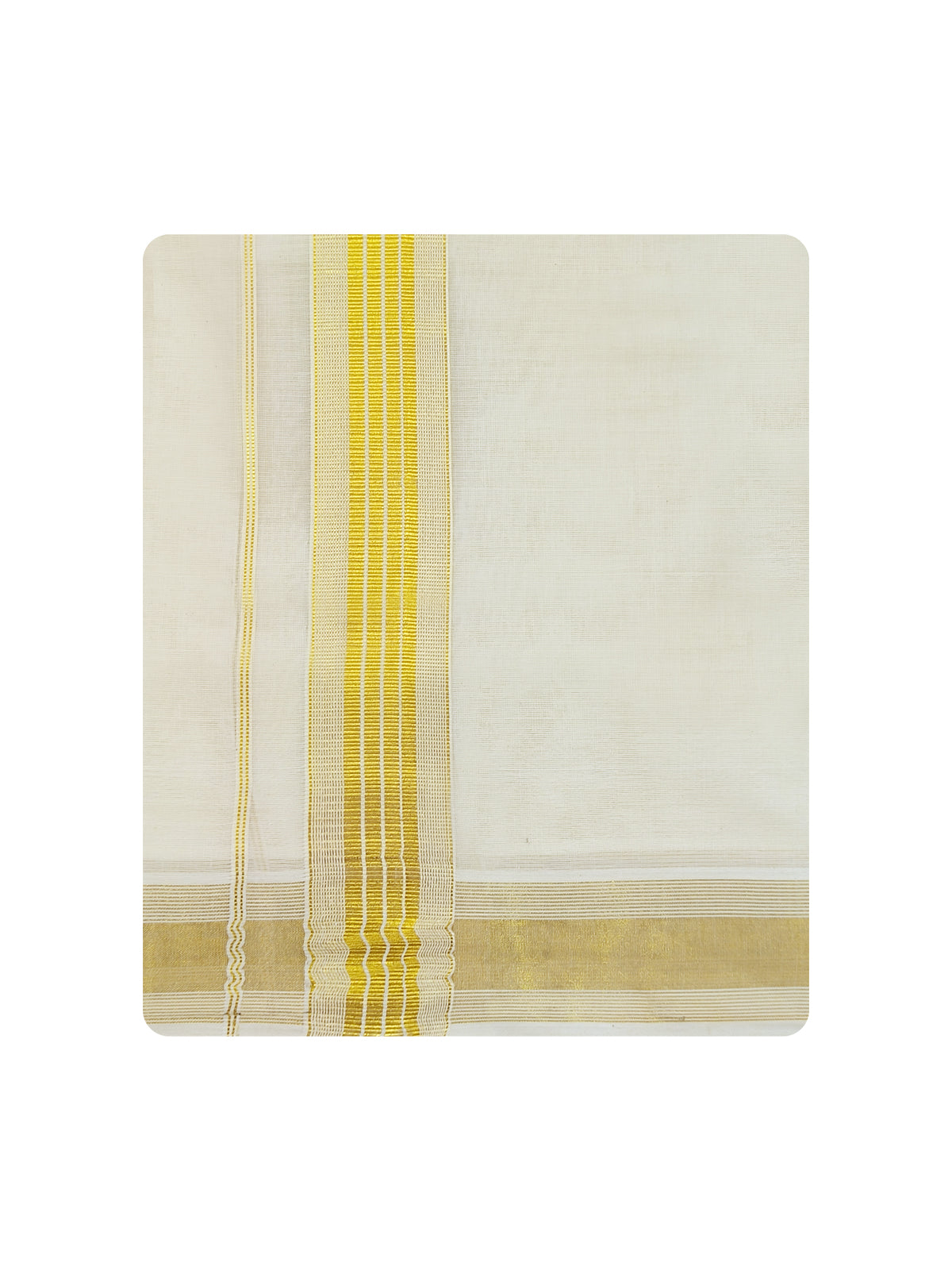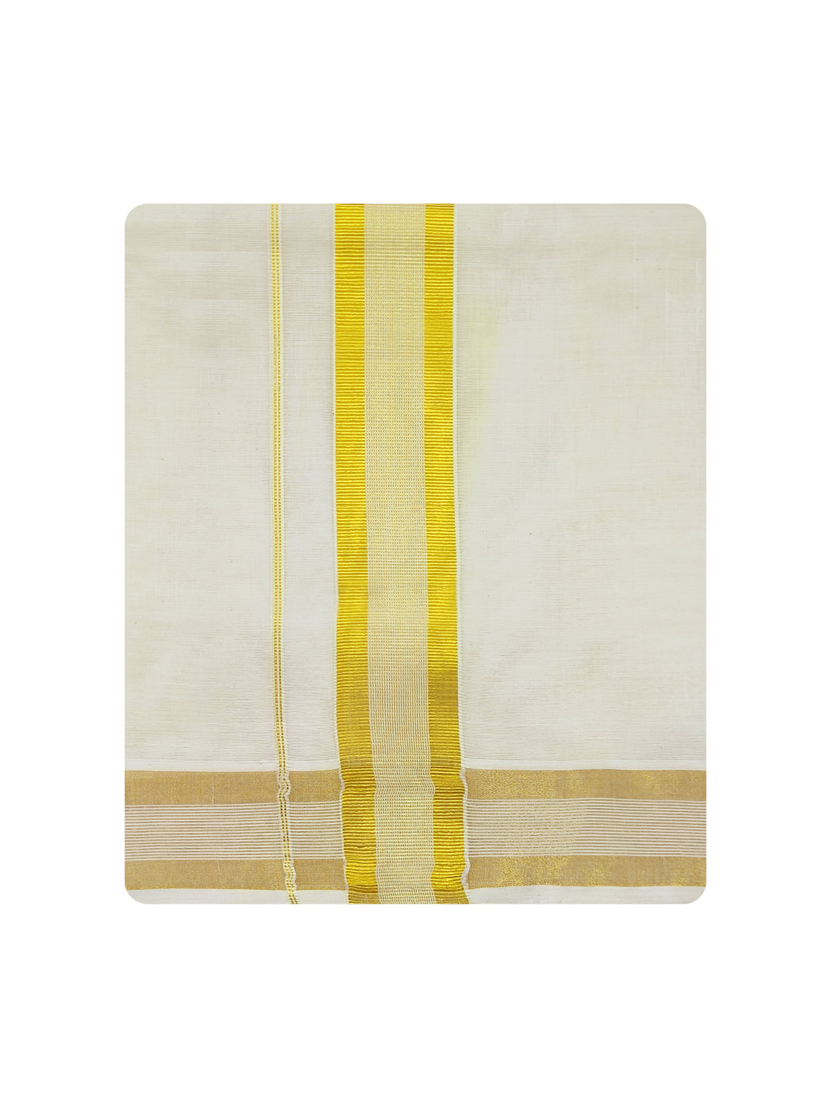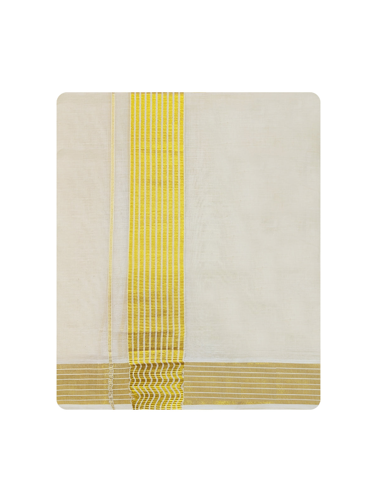 Navarasam Kora Cotton Dhoti with Gold Jari Fancy Double Dhoti is a wear for wedding and religious festivals. The fine quality of cotton yarns used makes the wearer feel More comfortable.