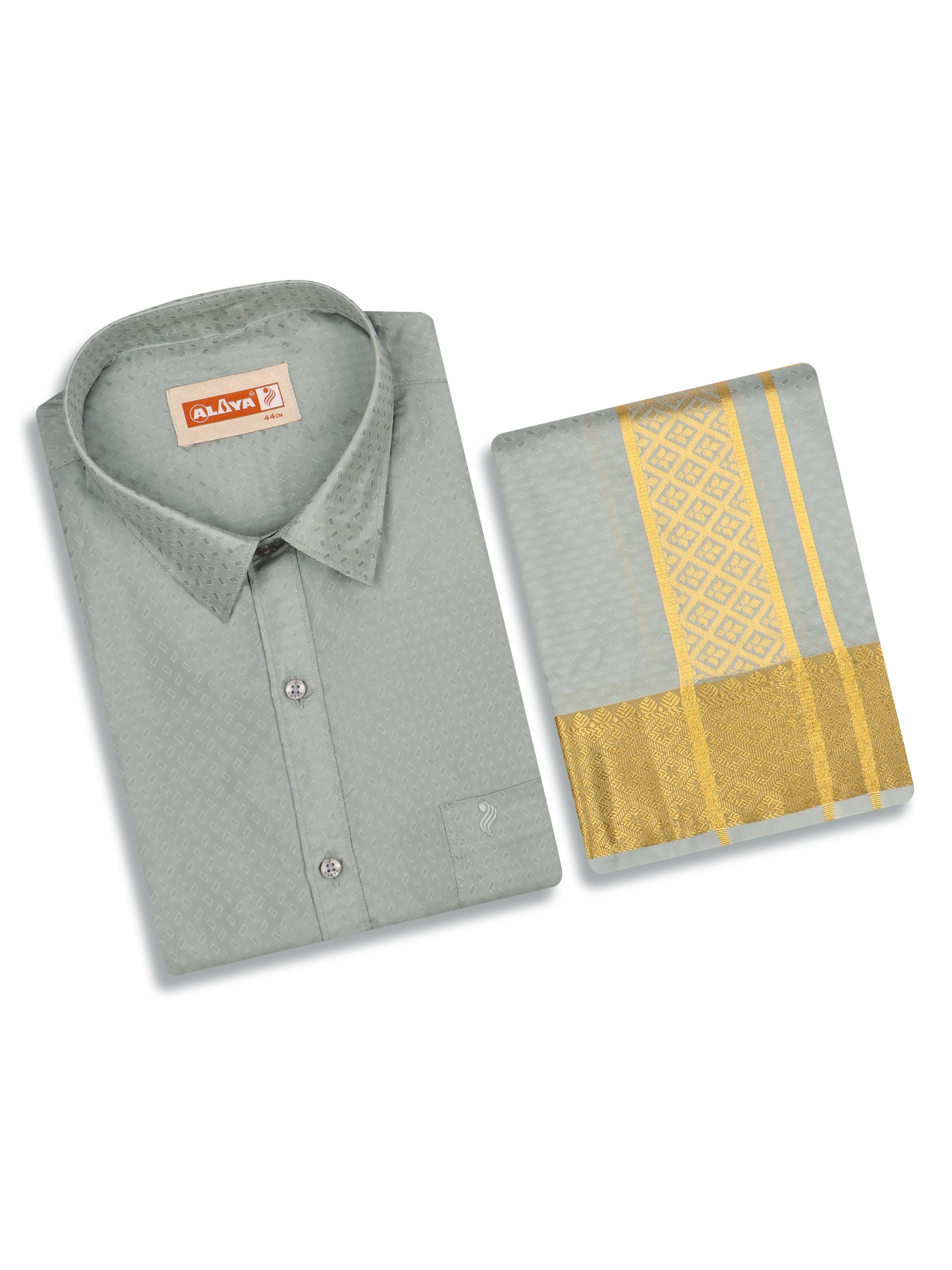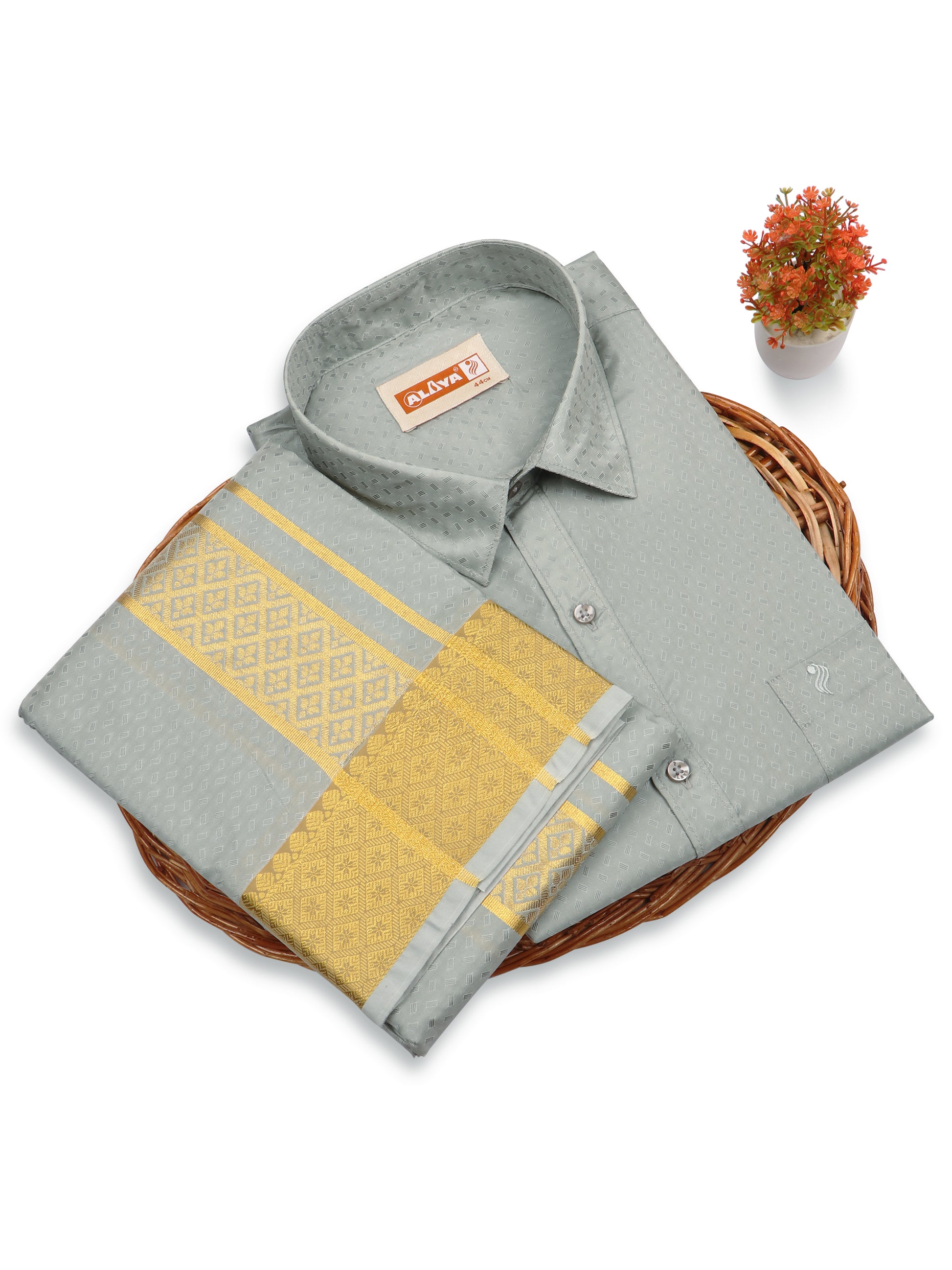 Navodhaya Dhoti & Shirt Combo - Pastel Grey