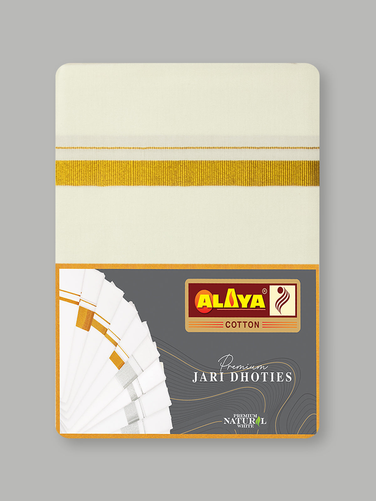 Rajalaya Cream Shirt & Gold Jari Border Dhoti 2.0 Mtr is a versatile option suitable for both special occasions and everyday wear. With a budget-friendly price point and stylish design, it makes for a practical and thoughtful gift option.