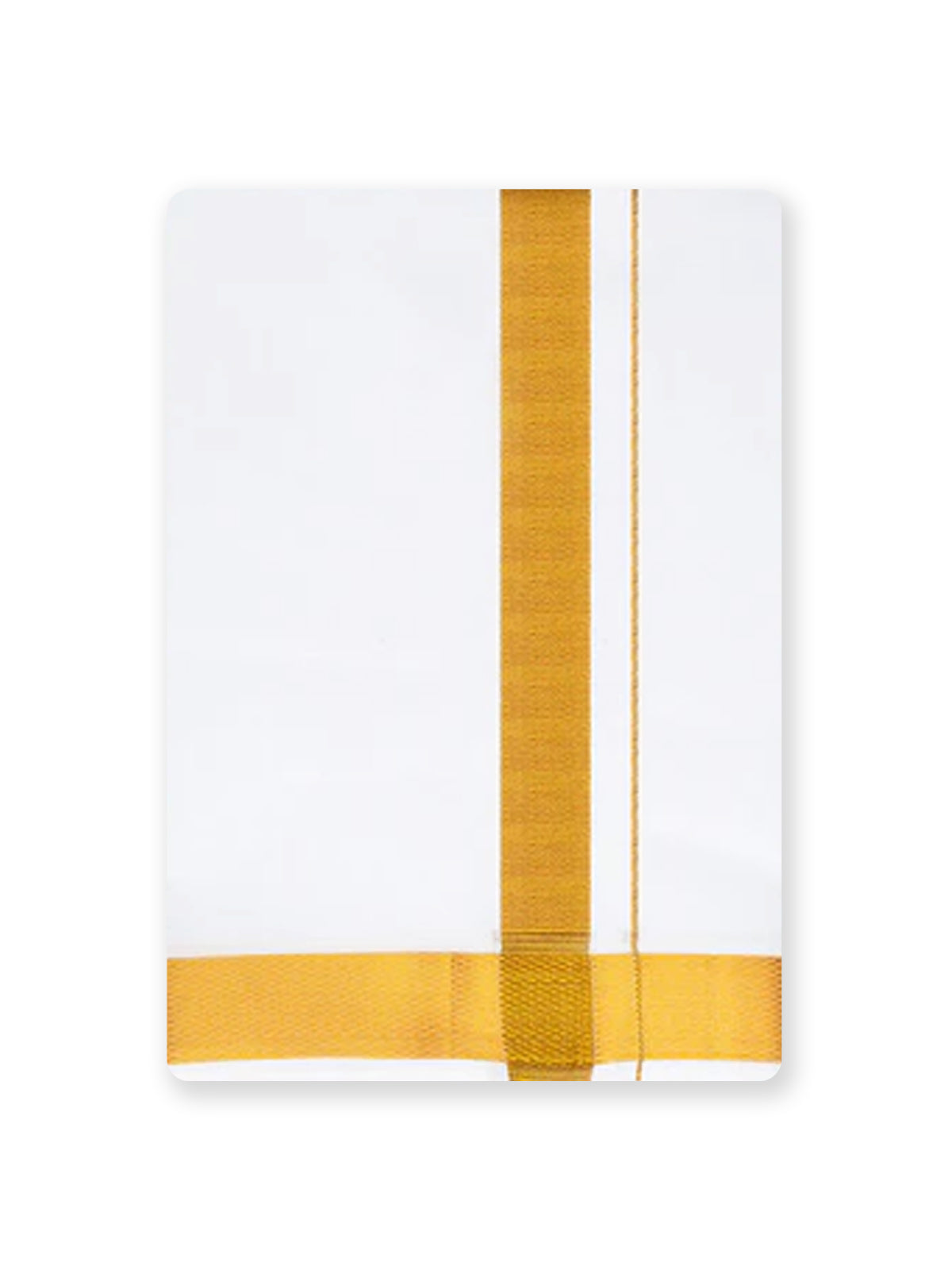 Upgrade Your Devotional Look With Sanjeevenam 9+5 Dhoti with Big Gold Jari Border. Total Length on dhoti is 6.30 Mtr Dhoti - 4.05 Mtr & Towel 2.25Mtr. Need to make a separate cut (Dhoti &Towel) from your side.